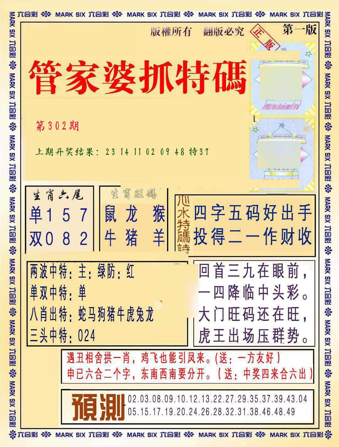 302期:【前后落码→24码中特】开?????准 ******************* |