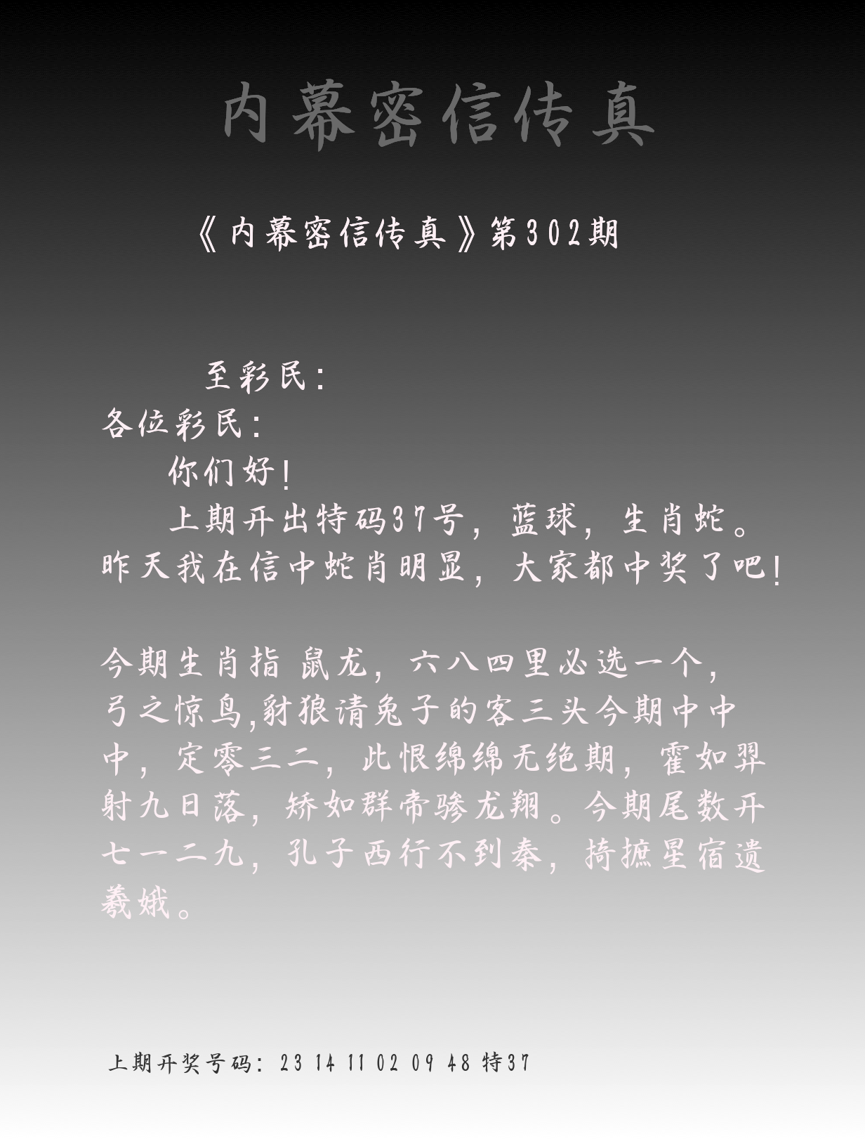 | 301期:精准单双〖单数〗开:37蛇对 | |