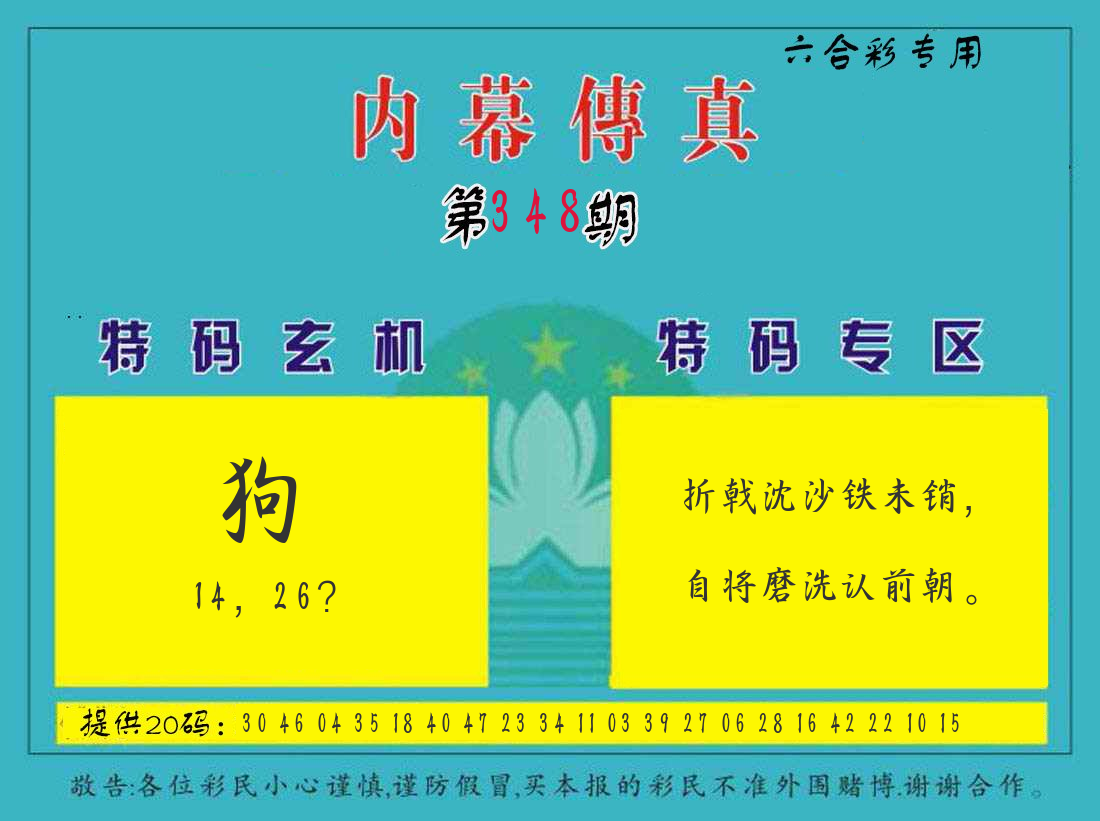 347期【隔壁老胡18码】开08狗 30-35-04-46-47-27 |
